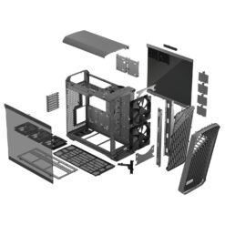 DISEÑO INTERNO OPTIMIZADO Fractal ha movido la fuente de alimentación a la parte superior (Top-mounted PSU shroud). ¿La ventaja? Libera todo el piso del gabinete para que los ventiladores inferiores inyecten aire fresco directamente a tu tarjeta gráfica, sin obstrucciones.